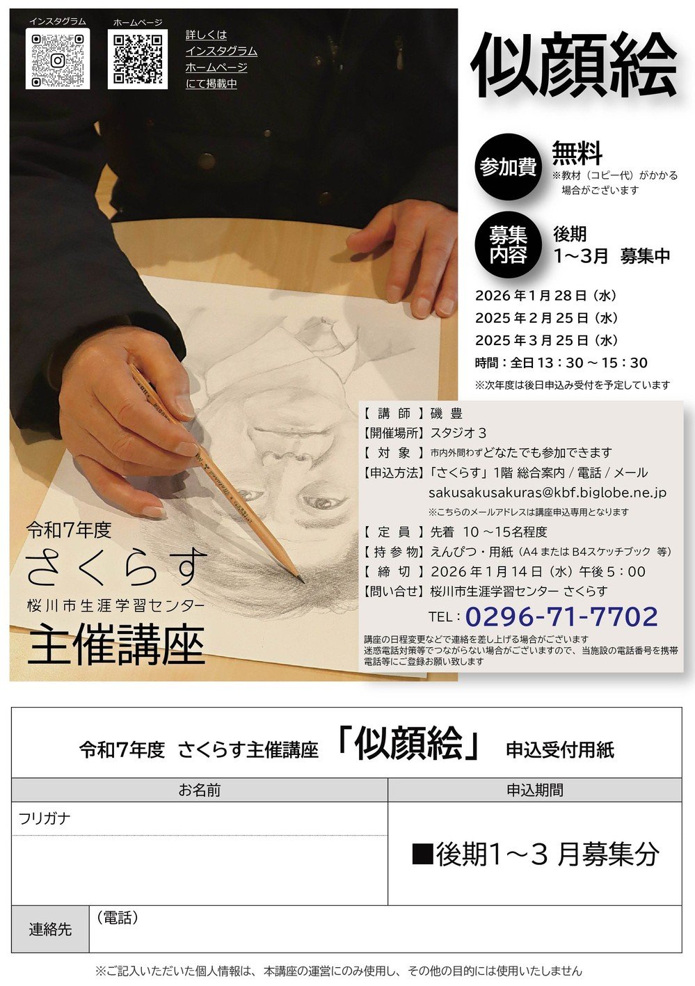 | 主催・問い合わせ | 桜川市生涯学習センターさくらす TEL:0296-71-7702 |