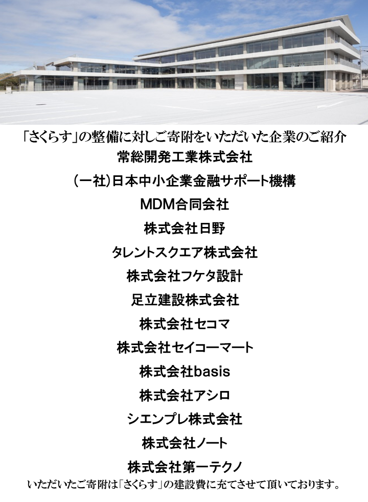 さくらすの整備にあたりご寄附をいただいた企業を紹介します