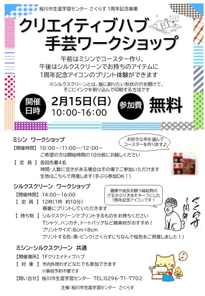 【さくらす1周年】クリエイティブハブ手芸ワークショップ
