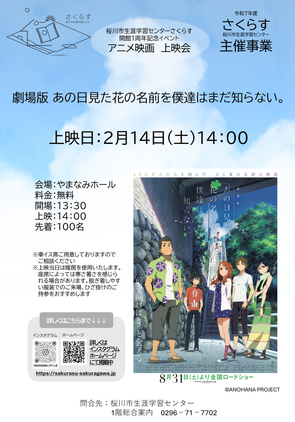 【さくらす1周年】劇場版 あの日見た花の名前を僕達はまだ知らない。 アニメ映画上映会
