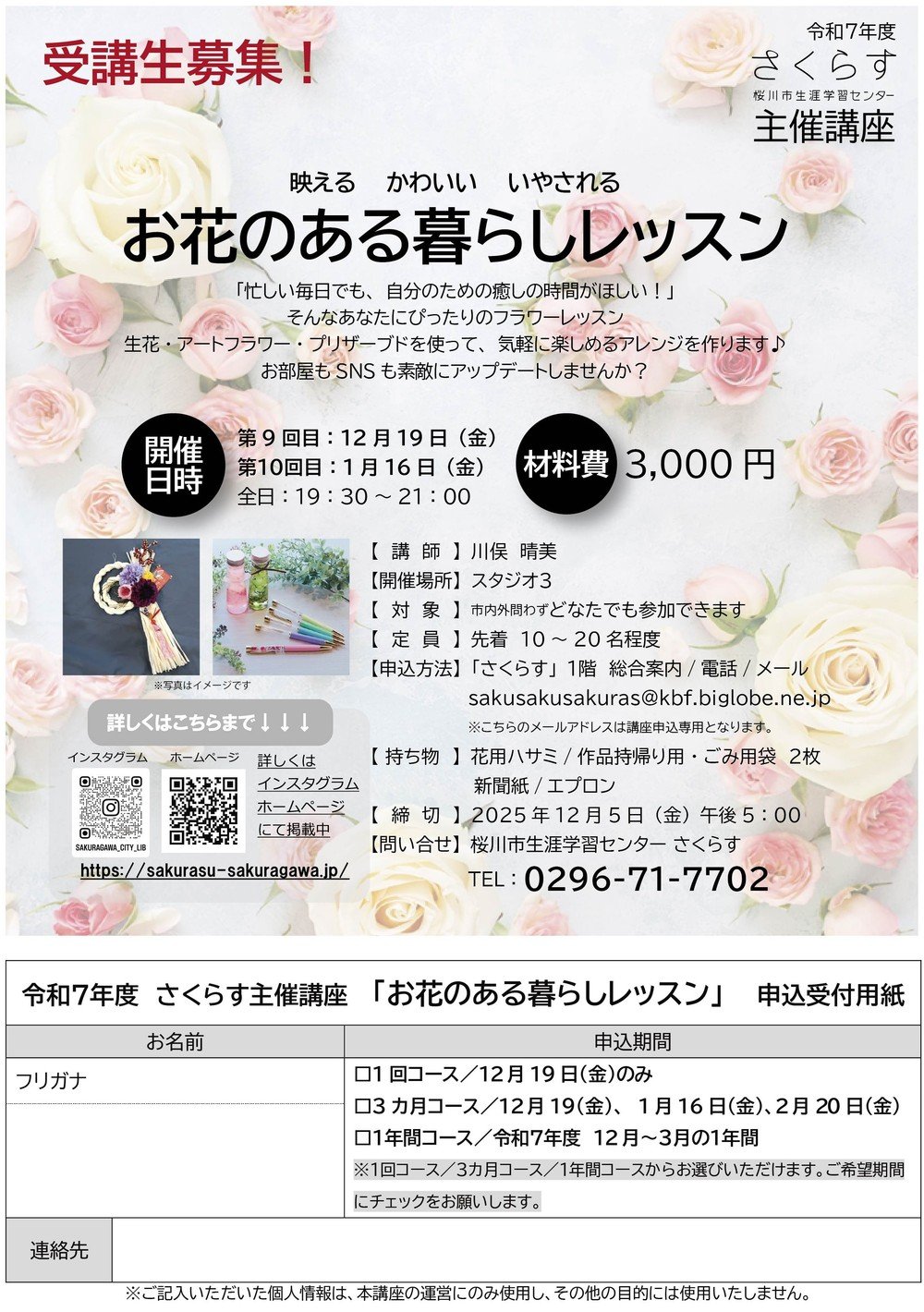 お花のある暮らしレッスン 受講生募集 さくらす主催講座